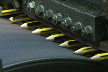 而另一撥被切好的木板就要和筆芯碰頭了。