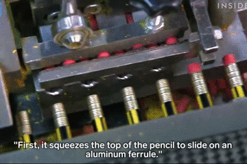有些鉛筆後面會配有橡皮擦,這些也是由機器完成。