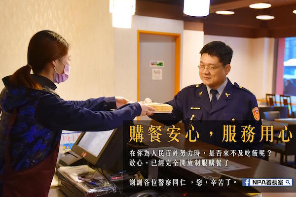 ▼為了照顧警察的健康,其實NPA署長室早就在一年多前公告,警察可以穿制服購餐,「我們希望同仁在公務繁忙後,不再因為勤務擔誤用餐,連最基本的生活、飲食需求都成困擾。所以我們業已律定勤中及勤餘開放同仁能夠制服購餐,當然同時也請同仁注意隨時收聽勤指中心所派遣之任務,以及購餐時的自身與械彈安全