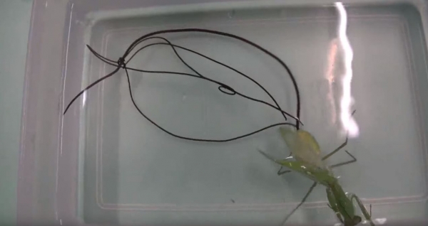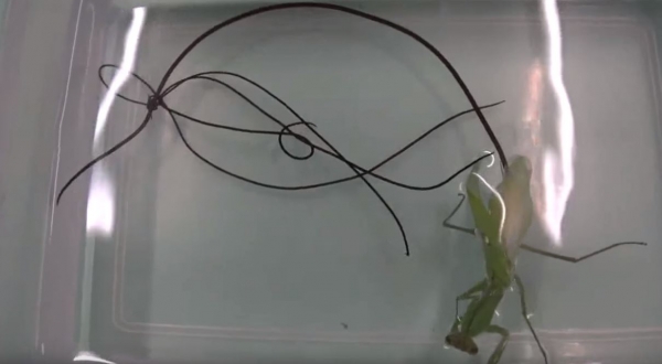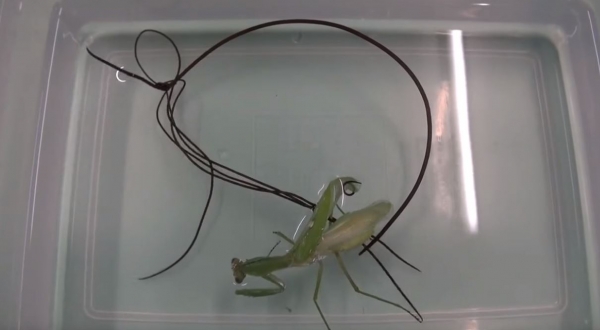 其實寄生在螳螂的寄生蟲為「鐵線蟲」!卵內幼蟲孵出以後,便會進到螳螂、蟋蟀等昆蟲的體內發育成稚蟲!