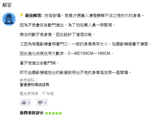 有人認為「可能因為超商可以買高鐵票,所以用來測量身高」,這個好像蠻有道理的~