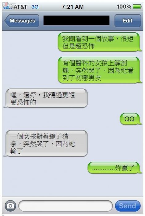 「男朋友,我肚子餓,幫我買咖哩鍋貼或是韓式鍋貼+柳橙汁」,原PO則是「等下買」。32分鐘後,女生餓得受不了,又再次傳訊息「你的女友已餓死在床上,是否使用道具將她救活?!」還給出4個選項「A 咖哩鍋貼+柳橙汁」、「B 韓式鍋貼+柳橙汁」、「C 咖哩+韓式鍋貼+柳橙汁」、「D 失去女朋友(建議選C)」。