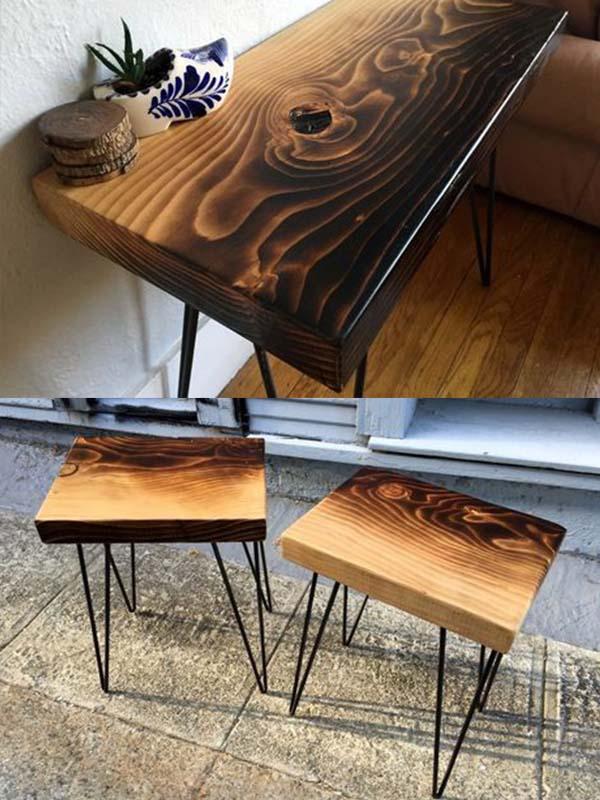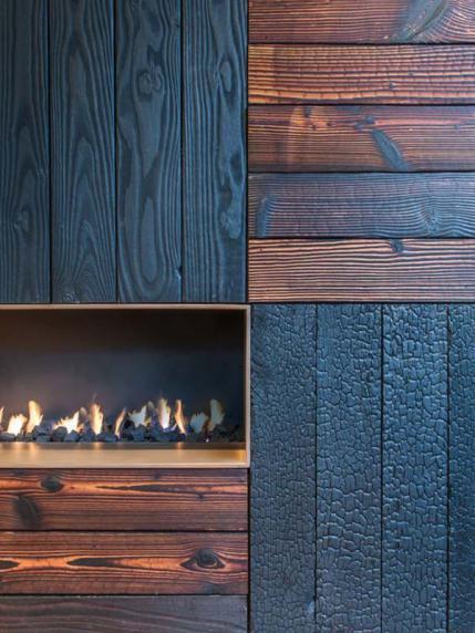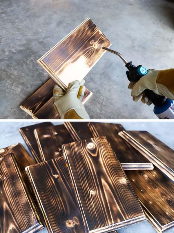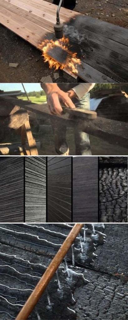不過他們也不再局限於木板原來的色調,而是拿火燒一燒,真聰明!