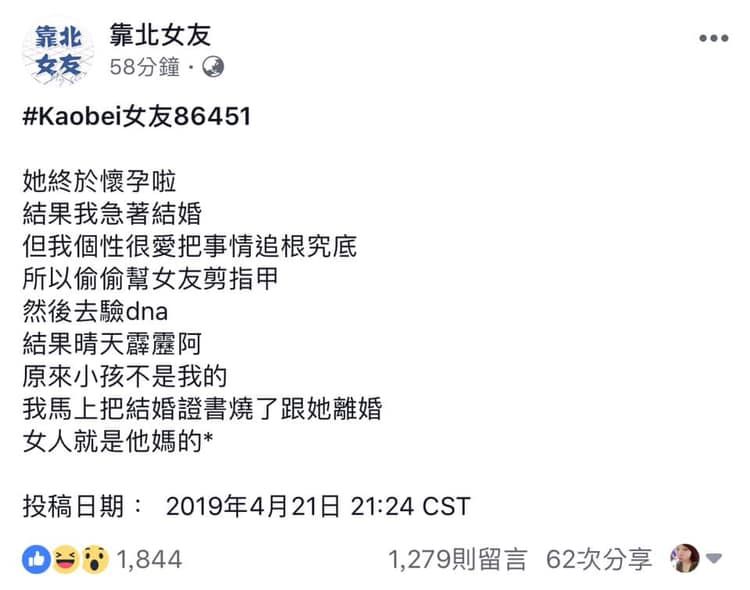 所以在某日偷偷幫女友剪指甲,然後去驗DNA,結果還真的發現小孩竟然不是他的!