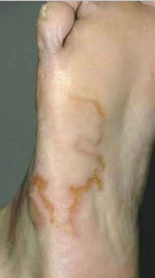 剛從非洲回家回國時,這位男子的腳上還只有一些紅疹跟隱約的形狀,