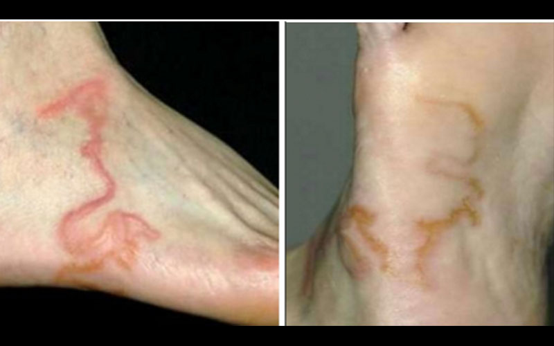 擔憂的他決定找了另外一位醫生協助,結果發現他腳上的紅痕根本不是血管,而是一條肥大的蠕蟲!