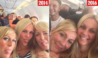 於是立刻翻出「2年前」她和好姐妹搭乘飛機到西班牙旅遊時的照片,結果!兩張照片