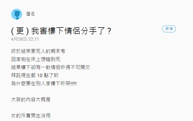 「其實有沒有你 結果都一樣吧 要分就會分 其他都藉口而已 睡覺比較重要」