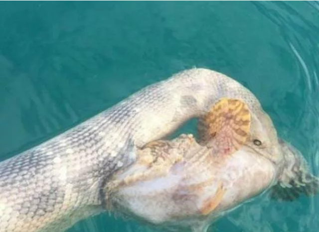 釣到一條咬著魚的蛇,覺得奇怪扔回海里,沒想到救了自己一命!