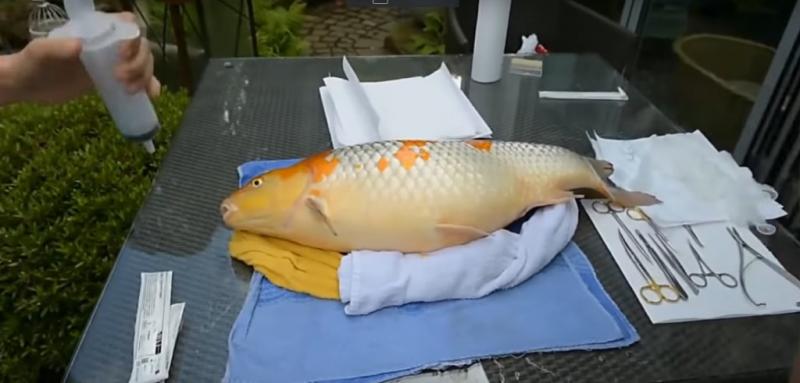 經過醫生檢查才發現錦鯉體內竟然長了腫瘤,必須取出腫瘤錦鯉才可能活下去。醫生還特別表示,幫魚手術有一定難度,且手術費昂貴,但男子並未因此打退,只要可以治好這條錦鯉花多少錢都願意。