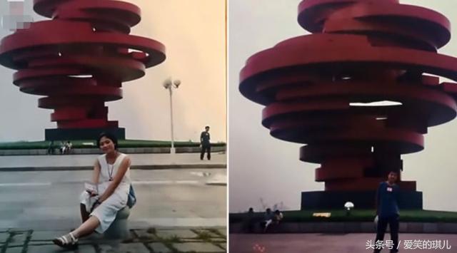 原來,17年前的當天,她陪著自己的母親來青島看病。順便到代表性的建築「五四廣場」拍下了這張照片