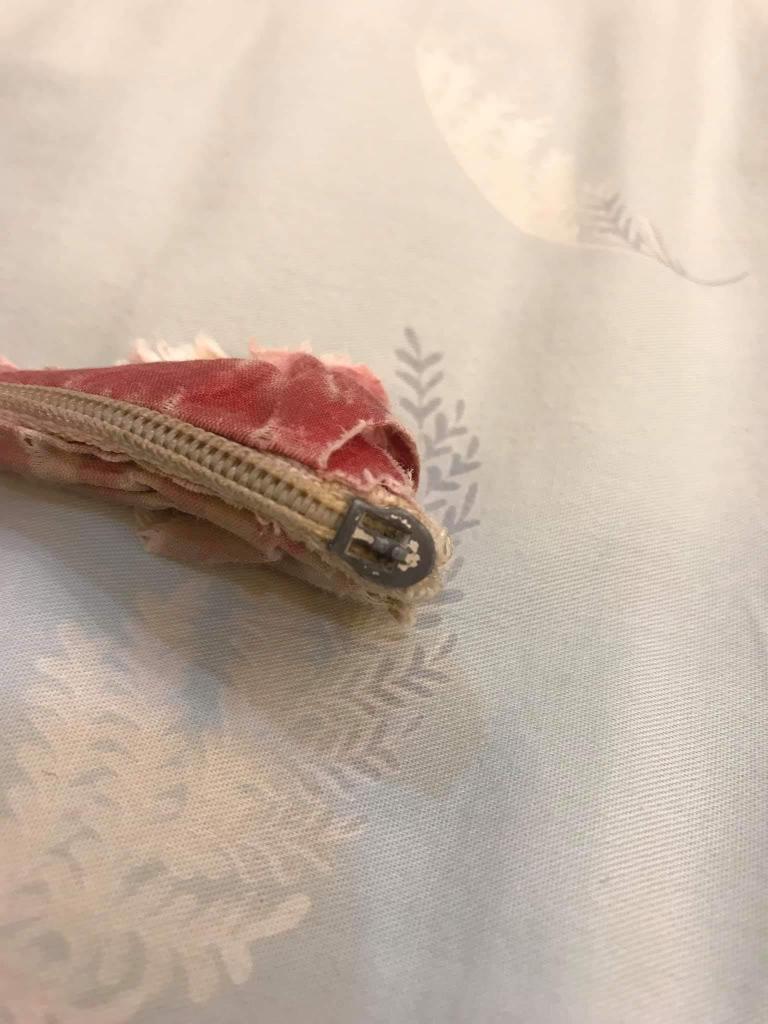 可能是因為拉鍊比較硬沒辦法啃吃不了…