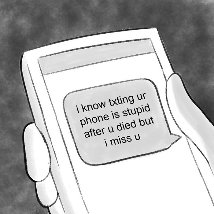 「我知道在你死後傳簡訊給你是一件很愚蠢的事,可是我很想你。」