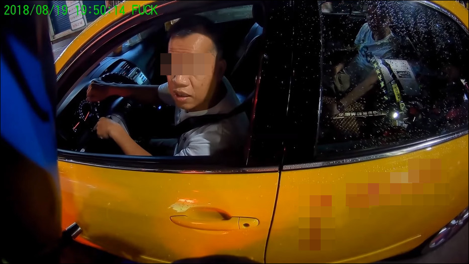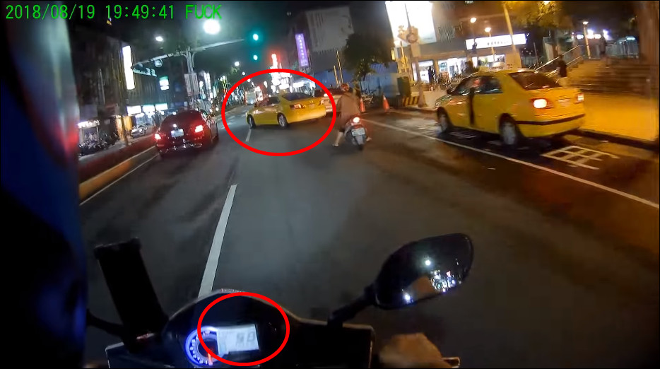 機車騎士上傳行車記錄器至臉書社團「爆廢公社」上,透過影片可以看到,一台計程車從右方在停車格往左切時,沒有打方向燈,導致後方的機車嚇到,長按了5秒喇叭,接著騎士上前向計程車司機理論,「出來的方向燈都不用打的喔?」因為剛剛切換道路時實在太危險,可能差點會撞到。