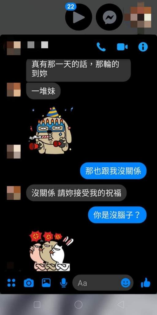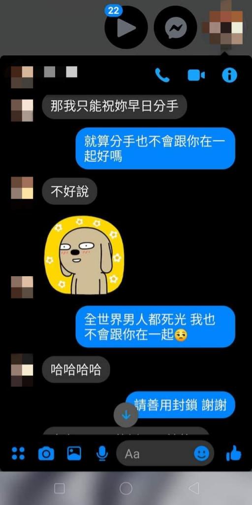 「笑死,真的很有事!你應該跟他說我男的,嚇傻他,保證他封 鎖」