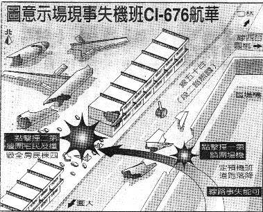 當下是衝出跑道圍牆道,直接跑到國際路上,因為不幸撞上計程車及民宅後爆炸。