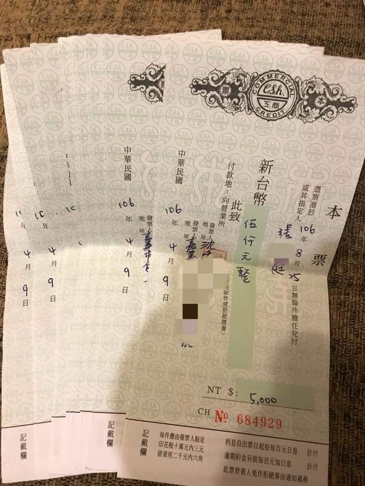 他因為工作需要,跟我說需要騎車上下班,要買機車(還指定要many黑色施華洛世奇版)但他錢不夠,跟我借了5萬現金,說每個月還5仟,至今一毛都沒還,有簽了本票給我,因為心軟沒去申請執行命令。