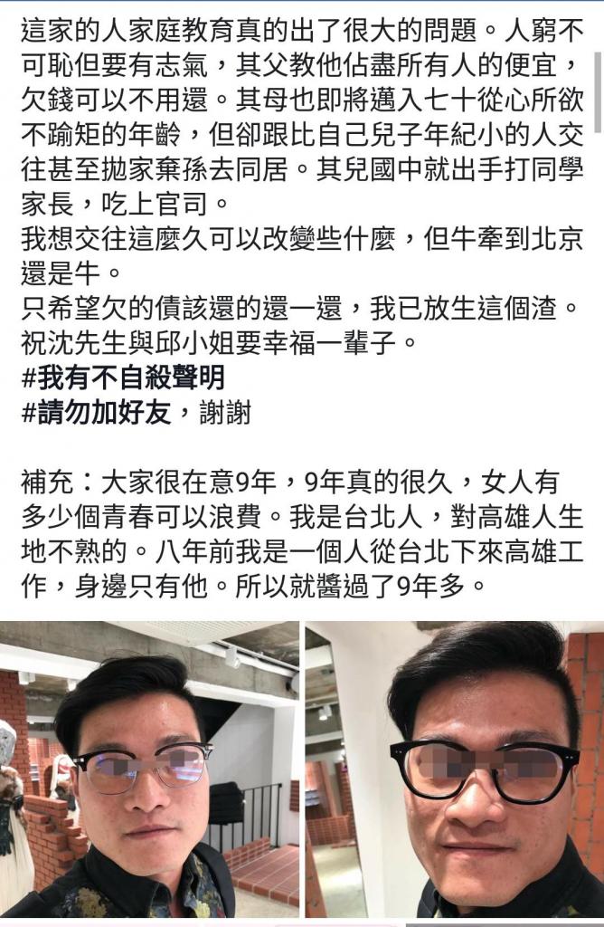 事發後他都有藉口,是朋友的朋友順路載,他們沒有任何關係,請求我原諒,我是原諒他了。