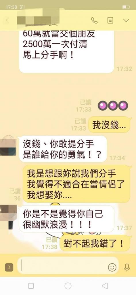 在臉書社團中有位網友貼出了跟女朋友的對話向各位大大求助。