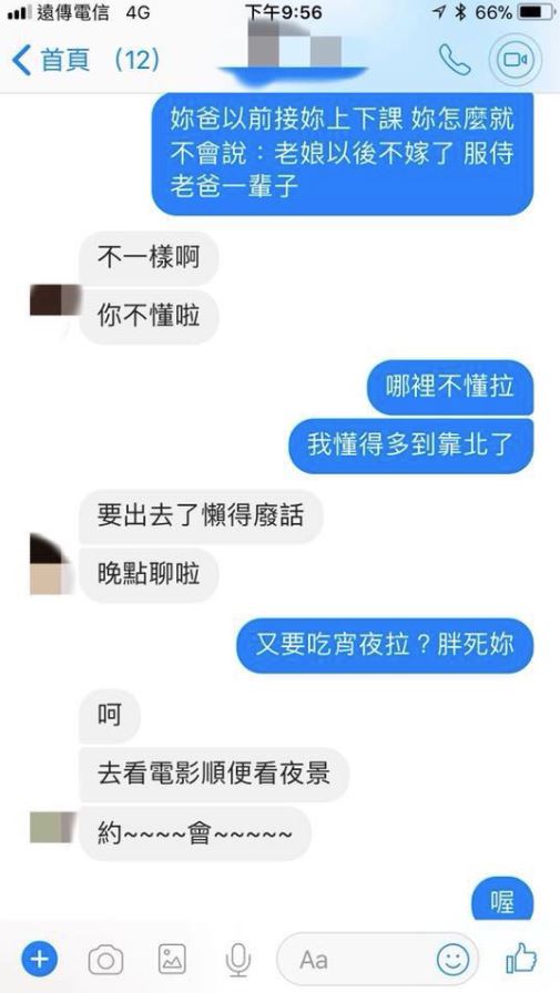 女兒立馬回嘴:「你不懂啦」,老爸也不甘示弱回說:「我懂的可多了」女兒懶得跟老爸吵,透露晚一點要和男友看電影順便看夜景。