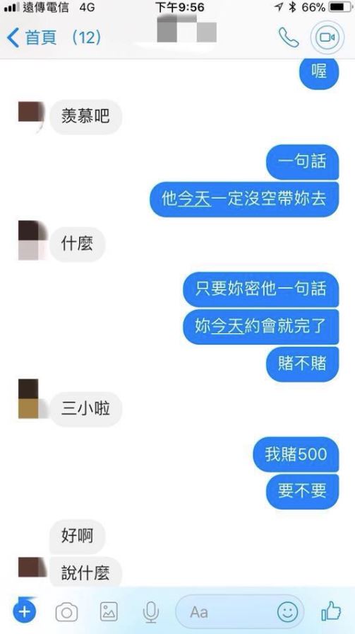 沒想到不服輸的老爸立刻和女兒打賭:「一句話,他今天一定沒空帶妳去」,語出突然,女兒還不曉得什麼意思,老爸接著解釋:「只要妳密他一句話,妳今天約會就完了,賭不賭?」