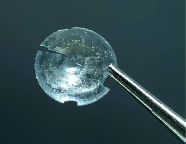 經過核磁共振掃描發現女子的右眼有顆突起,一開始醫生認為是囊腫,但手術後才發現是一個已經破裂的陳年隱形眼鏡!