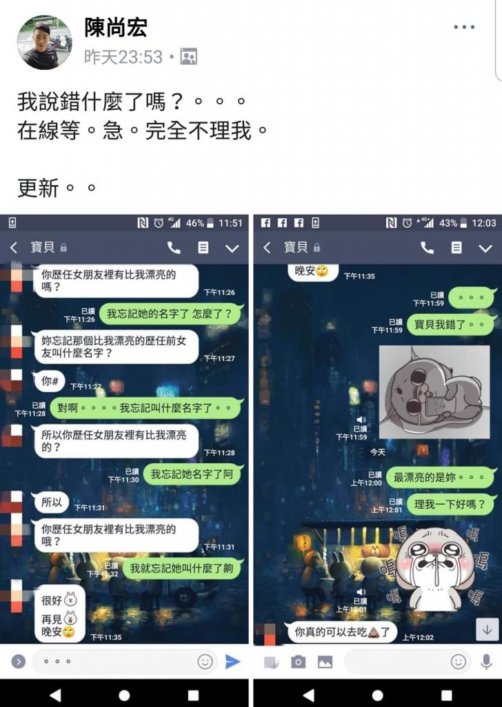 爆廢公社成員日前上傳了一段與女友的對話,表示自己惹怒女友並求助社員該如何安撫生氣中的女友?