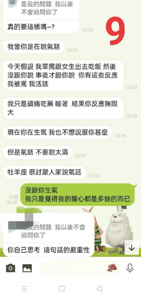 「男的沒錯 但也太囉嗦。。。 女的更好處理 隨便講個甜蜜的話就能帶過去了」