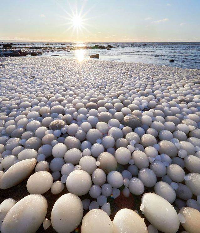 大自然很奇妙!芬蘭北部的海盧奧托島(Hailuoto)出現了罕見的景觀。海邊的沙灘上鋪滿了圓潤的「蛋」,在陽光下熠熠生輝,看起來很漂亮。當地居民看到這一幕都很驚奇。專家也表示,這種現象需要在很嚴苛的情況下才能形成。