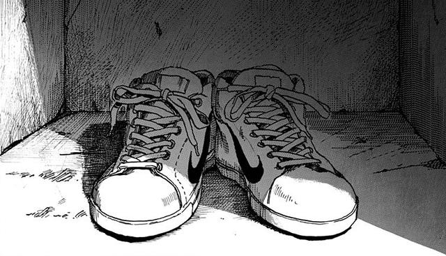 橋本打開更衣櫃,裡面出現了一雙全新的運動鞋。