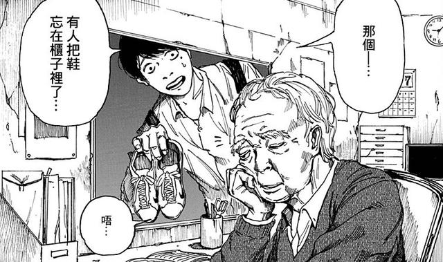 在漫畫結尾,這個老頭來到更衣櫃前喃喃自語的說:
