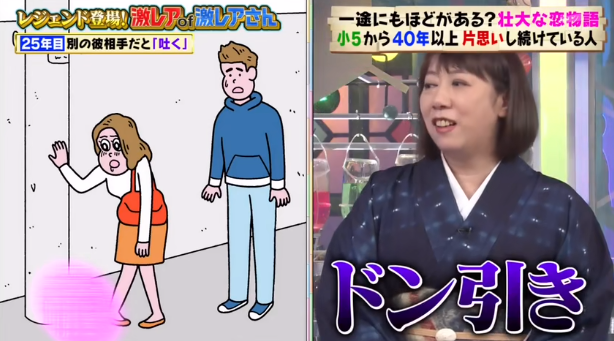 節目最後,工作人員打了春田的電話,向他說了田島愛了他42年,得到了以下回答:「我曾和她交往過3個月,她是個非常好的人,太輕率的話我不能說,只能說希望她幸福。我們已經20多年沒有聯絡了,希望田島今後也能在自己的道路上不斷前進!」,田島的眼淚止不住了,是這段感情的句號嗎?應該不是,田島還會繼續愛下去。