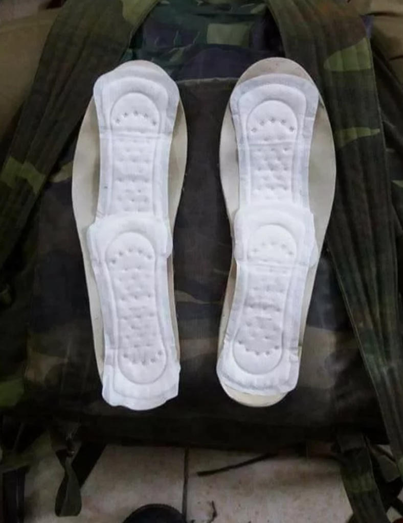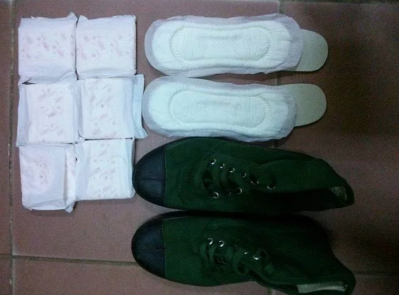 因為衛生棉的高吸水性和柔軟,他們認為非常適合拿來當鞋墊。