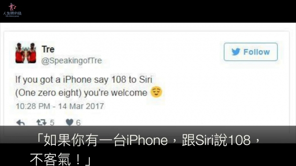 這次國外就有網友PO出,如果你有愛瘋,就對Siri說108看看吧!還表示大家稍後會感謝他的!