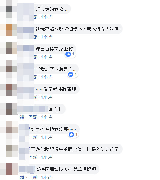 網友看完紛紛笑翻表示:「這要是我老公就等著被滅口了」、「你老公不是渾然不知,應該是視而不見」、「沒有什麼比高地塔更重要的事了!!!」、「沒弄到主機、沒灑到鍵盤,當然繼續玩啊!」、「先打老公一頓,然後幫他擦優碘」