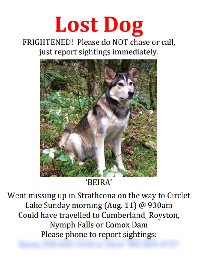 居住在加拿大溫哥華的凱西(Kacey Wall),日前與男友克裡斯(Chris)帶著他們的愛犬哈士奇貝拉(Beira)一起到斯特拉斯科納公園(Strathcona Provincial Park)散步,沒想到狗狗竟然在這裡與他們走失了!