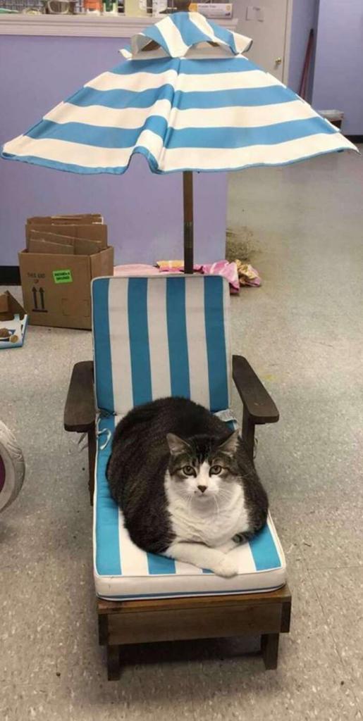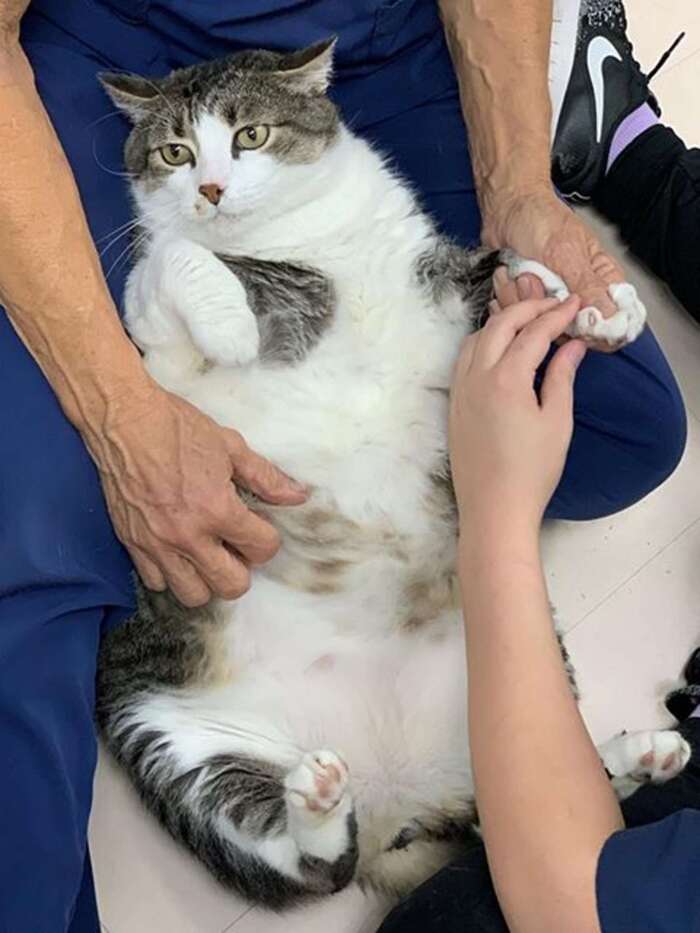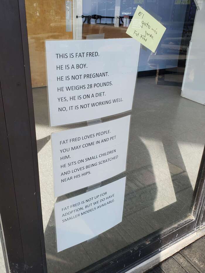 根據The Dodo在2019年12月21日的報導,這隻肥貓叫做「胖弗雷德(Fat Fred)」——是一隻可愛到膨脹,每天都在路易斯安那州的毛孩動物醫院(Furry Friends Animal Hospital)裡閒晃。