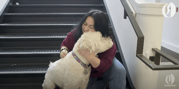 從此,牠便開始和法語老師Dana一起工作,所以Dana不僅是Archie的同事之一,也是牠的主人。