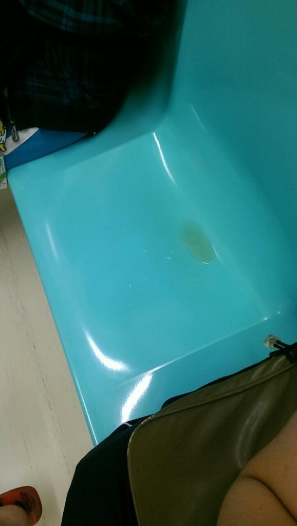 『你是很喜歡碰別人尿還是很想要繼續坐那個椅子?先擦褲子跟包包啦!』我對他說。
