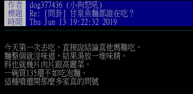 雖然大家都說甘泉魚麵難吃,我個人是覺得蠻好吃的阿
