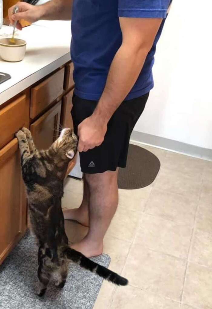 當牠不上班時,牠與牠充滿愛心的家庭和家中另外兩隻貓兄弟撒嬌抱抱,證明了:外表可是會騙人的。