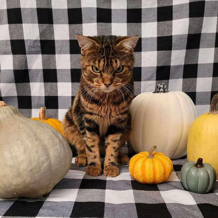 根據The Dodo在2020年11月21日的報導,當俄亥俄州阿克倫市(Akron,Ohio)的一名好心人注意到她家周圍有一隻看似脾氣暴躁的虎斑貓在閒蕩時,她以為此貓不想和她有任何關係。牠不僅皺著眉頭,而且似乎在外面住了很長時間。