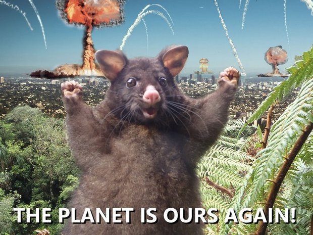 在紐西蘭被拍下的這隻樂觀慶祝負鼠的照片在國外掀起了一股熱潮。根據Bored Panda的報導,Reddit用戶Stretlaw說他的父親在狩獵的時候這個小傢伙突然出現,讓父親有機會拍下這一幕。