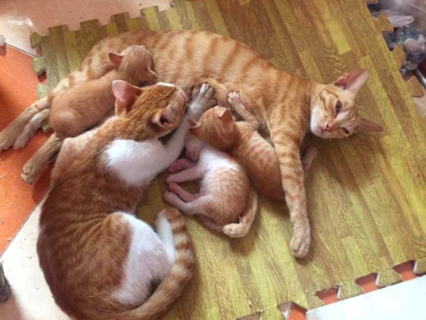 ▼主子把店裡的招財貓玩壞了,於是牠就親自上陣了…..