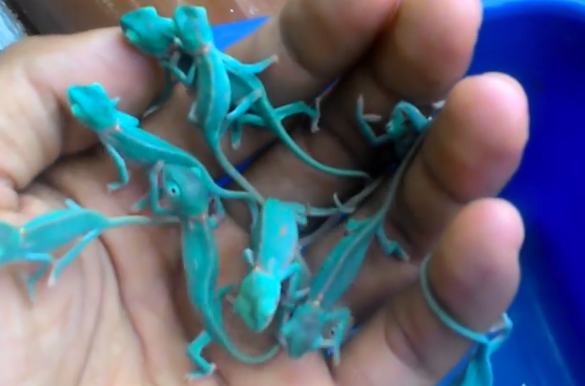 你看過變色龍寶寶剛生出來的模樣嗎?飼主Giland就在Instagram上傳了九隻變色龍寶寶在他手上爬的影片,大家都很少看到變色龍小時候的樣子,而且還一次這麼多隻,他們還是超夢幻的藍綠色!跟長大後的形象很不一樣,讓網友們都覺得超神奇!