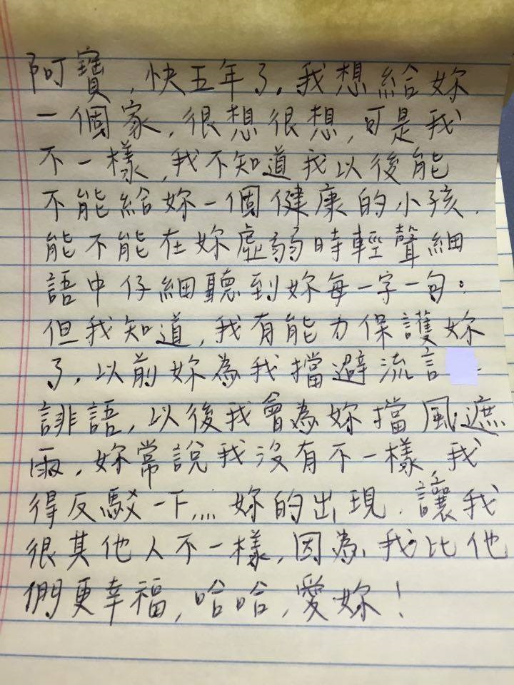 男友聽完哭得像個小孩一樣。兩人堅定的感情,感動了許多網友。