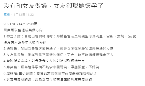 網友在DCARD上發文問【沒有和女友做過,女友卻說她懷孕了】到底是怎樣???