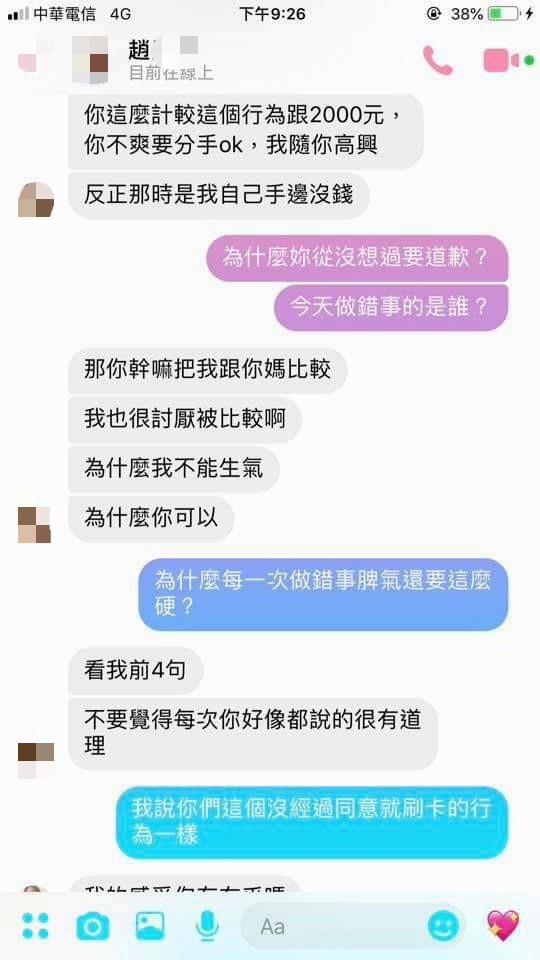 如果這些對話大家還是認為我是想找藉口分手,那我願意成為全民公敵。