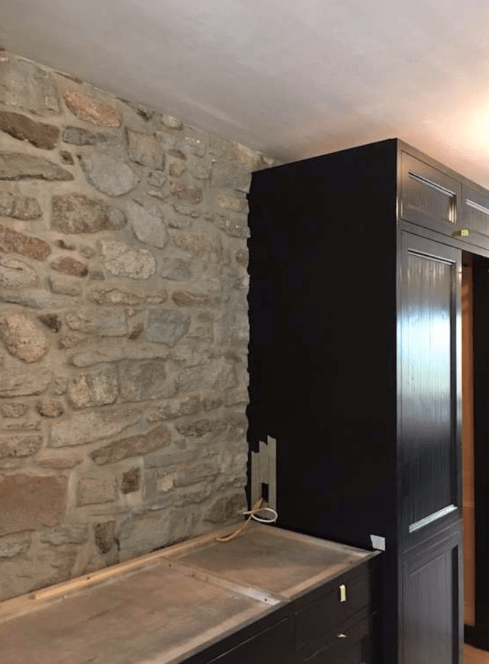 原來這些凹凸都是要對齊牆上的石頭,現在這個櫃子跟牆面可是完美契合了。