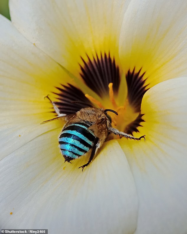 這種藍條紋蜜蜂可以在除了塔斯曼尼亞之外的所有州的花園裡看到,而且身上的條紋因為異常顯眼所以其實很難不發現。